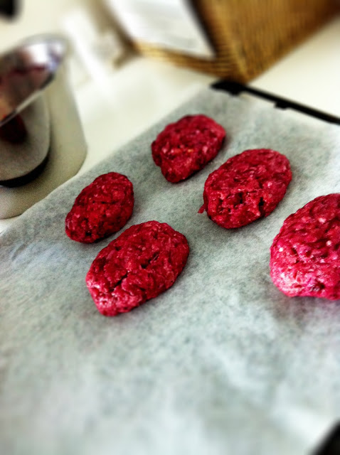 Raasta punajuuret ja hienonna sipuli. Lisää kaikki aineet kulhoon ja vaivaa jauhelihataikina käsin sekaisin. Muovaile taikinasta pihvit leivinpaperin päälle uunipellille. Paista 200 asteessa n.15 min.